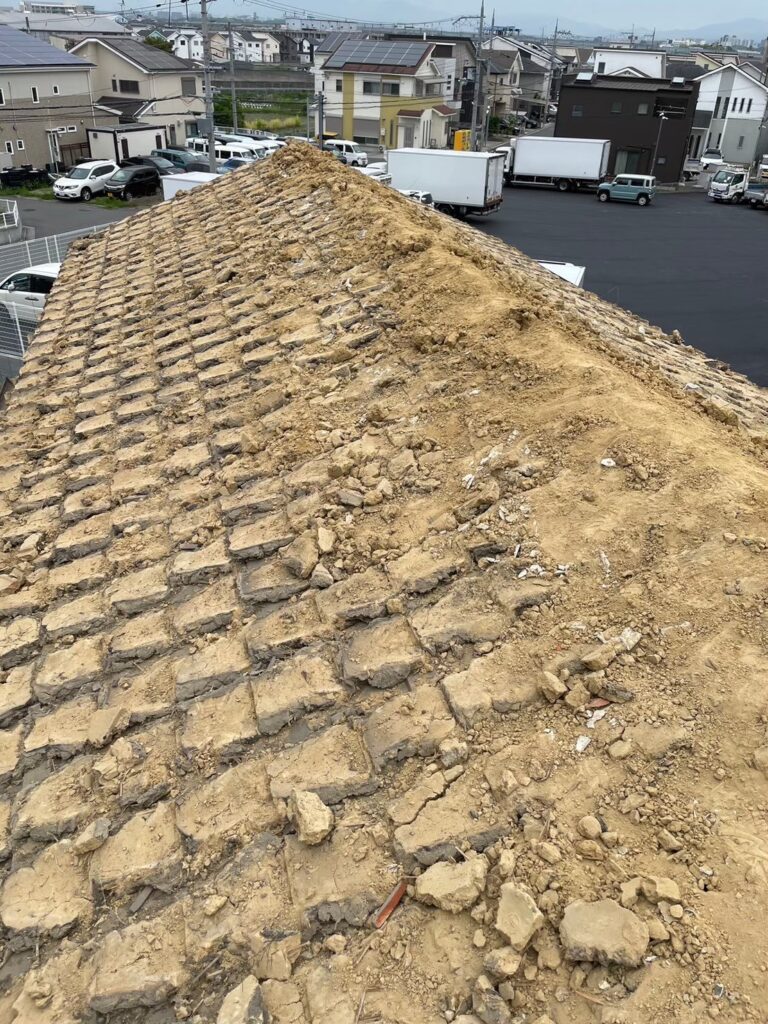 • 屋根土・瓦は先行して手作業で撤去
