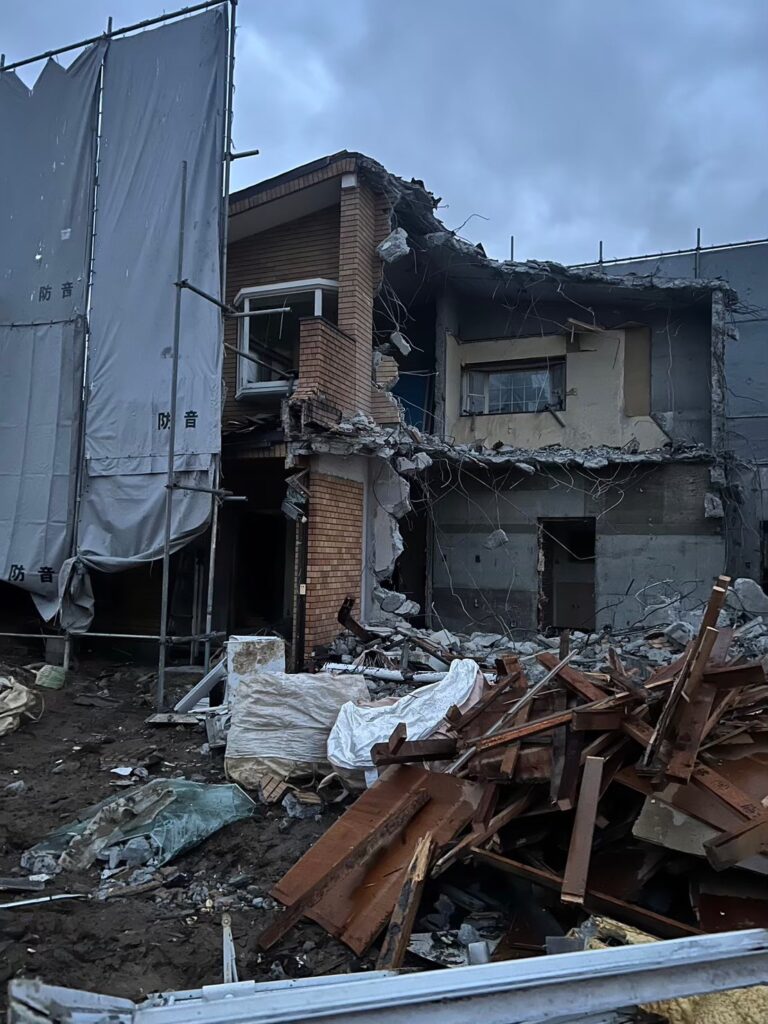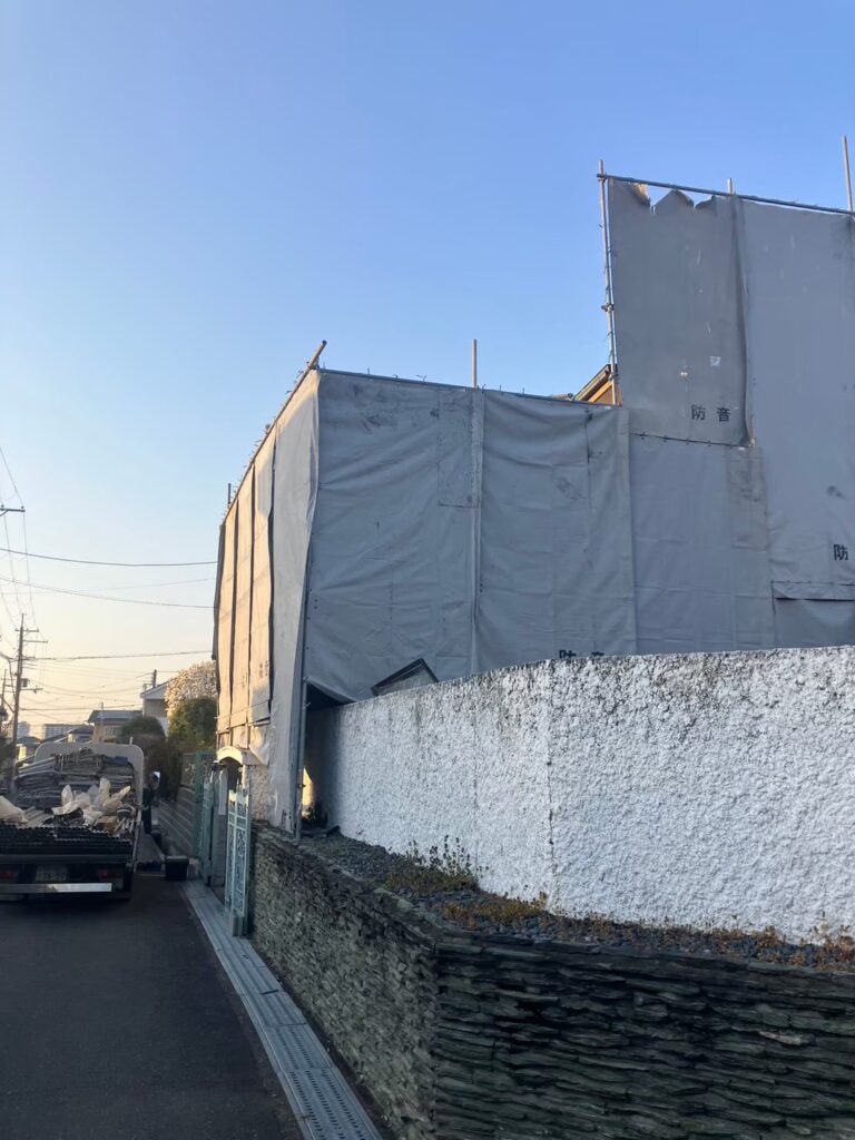 👉 上部から順に解体し、建物のバランスを崩さない施工計画を採用。